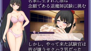 ▼名家のお嬢様が汚いおじさんに堕とされる!▼主人公の夜桜凛は念願である退魔師試験に挑むしかしそこにやって来た試験官は、近所で一番のセクハラ男だったねっとりとした試験官の視線、時にはセクハラに耐えながら凛はなんとか試験に受かろうと努力の限りを尽くすしかし、凛は最悪なことに罠により退魔師としての力を奪われてしまう力を取り戻す手段は「試験官と性行為する」ことのみ……迷う凛はなんとか己の力のみで試験に受かろうとするが試験官の下卑た欲望によって徐々に調教されていくのだった◇シチュエーションは胸もみ、フェラ、乳首吸い、手マン、パイズリ、 正常位、後背位、キス正常位、ネット配信、影姦(障子越しエッチ)……など14種類! ゆっくりと、ねっとりと快楽に堕ちていく展開! 自分の部屋で……外で……試験の合格をエサにされて…… 時には初恋を告白させられながら犯●れることもあります しょうもない竿役に堕ちてゆく美少女が好きな方にオススメ!◇オートモード・未読・既読スキップ機能有り◇R18イベントではBGM・喘ぎ声・フェラ音・挿入音・射精音が鳴ります ※喘ぎ声・フェラは汎用音声でフルボイスではありません ※設定画面からミュートや音量調整可能です◇分岐やイベント取り忘れをしづらいイベント選択式ADV 通常イベントを進めて、R18イベントを目指す形式です◇イベントCG:基本14枚(差分含計95枚) 回想シーンあり テキスト量は文庫本一冊相当(約11万文字)◇ノーマルED・トゥルーエンドどちらかに到達すれば、 回想全開放ボタンがタイトル画面に出ます▼注意▼本製品は「ティラノビルダー」によって作成されていますご利用のPCの構成や環境によってはゲームが正常に動作しない、または快適に遊べないことがあります。 購入前に必ず体験版にて動作確認をお願い致します。※体験版のセーブデータ引き継ぎはできません。感想、バグ・不具合の発見がありましたら、ci-enまでご報告お願い致します。