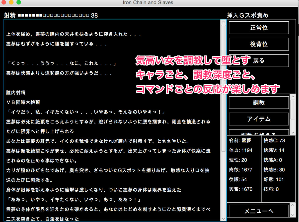 | ジャンル | 拘束 中出し アナル ごっくん イラマチオ シミュレーション 首輪・鎖・拘束具 売春・援交 男性向け |