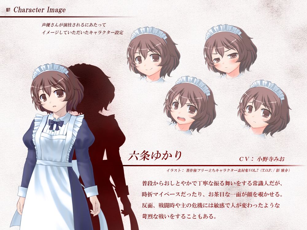 表記する際は「戦うヒロイン音声素材集 – 六条ゆかり / CV:小野寺みお」を推奨いたしますが