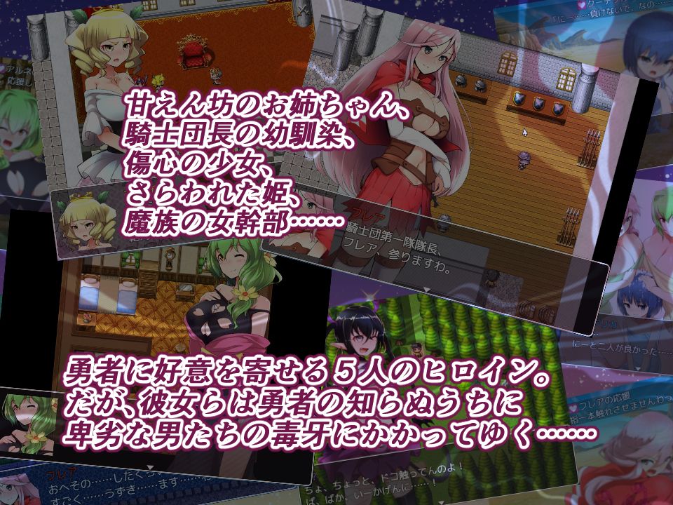 | ジャンル | 巨乳 ロールプレイング 男性向け 成人向け 寝取り・寝取られ・NTR 中出し フェラ ラブラブ・あまあま ハーレム ファンタジー |